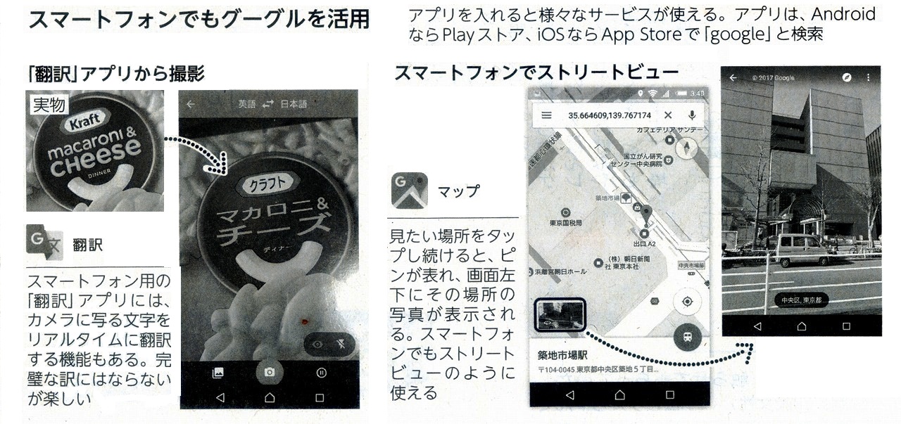グーグルの強みは、スマートフォンでも快適に使えること。そもそもAndroidというスマホ用の基本ソフト自体が、グーグルの製品です。もちろん、別の基本ソフトで動くiPhone、iPadなどでも使えることは言うまでもありません。